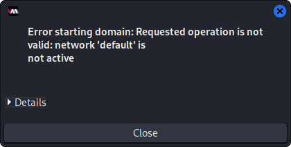 Error starting domain: requested operation is not valid: network 'default' is not active