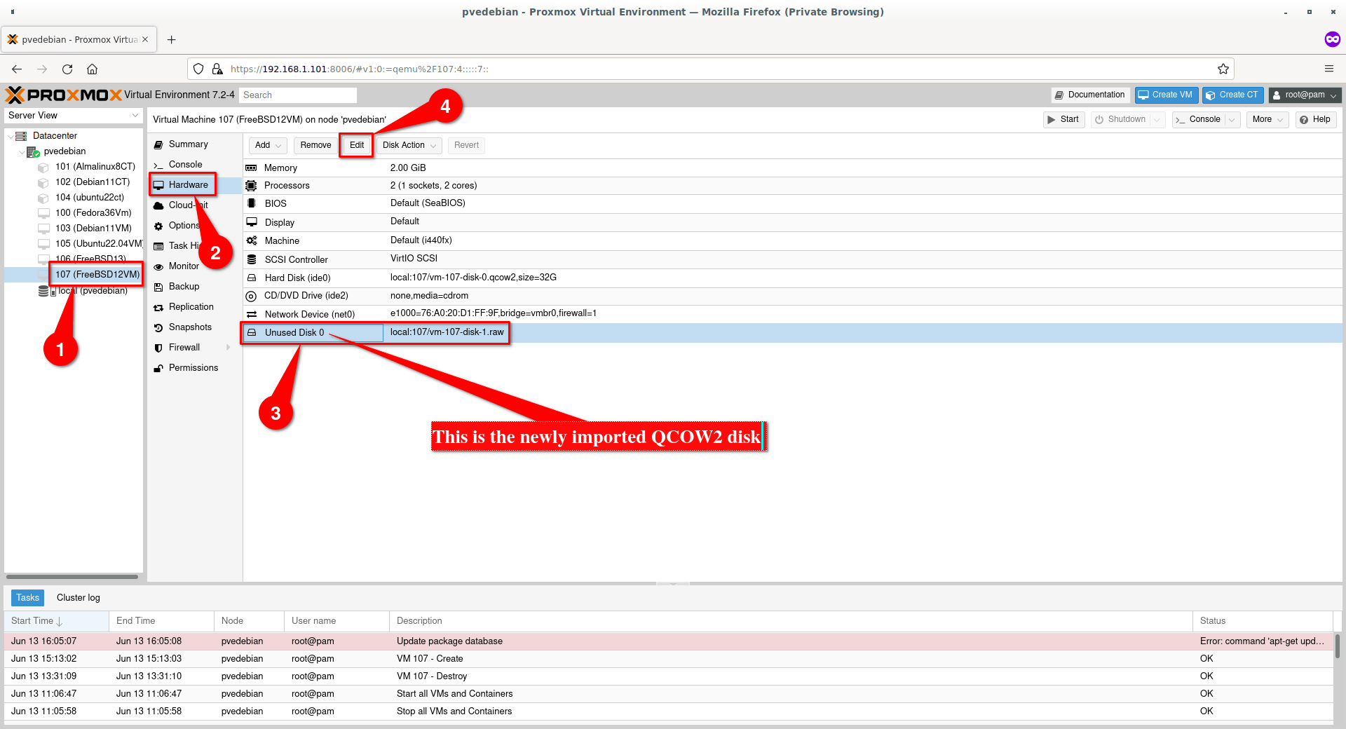 run command qm importdisk 501 nnSCZ910p1-img-vm_kvm.qcow2 Data